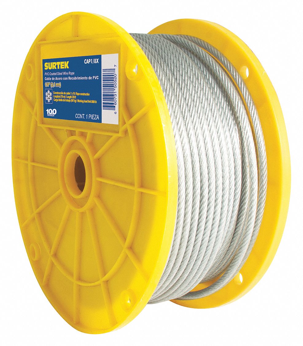 Cable material acero recubierto material de recubrimiento pvc tipo de trenzado 7 x 19 tamaño del cable 1 8 pulg diám.